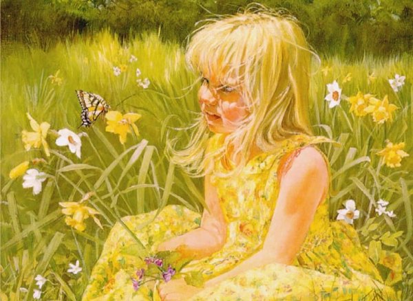 ![Девочка на лугу рисунок]()