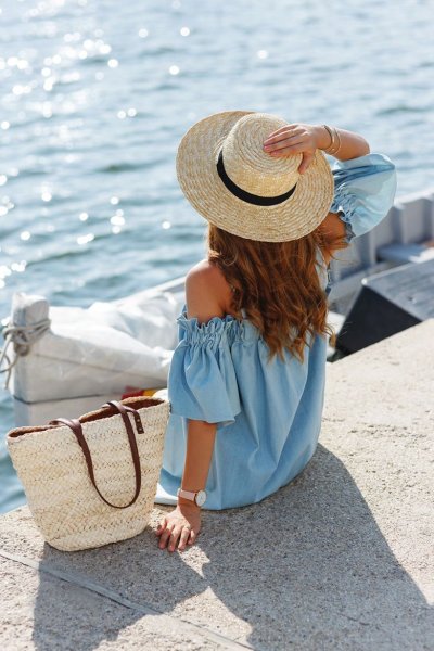 Женщина в шляпе на море