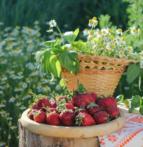 ![Ромашки и земляника]()