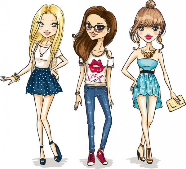 ![Мультяшные модные девушки]()