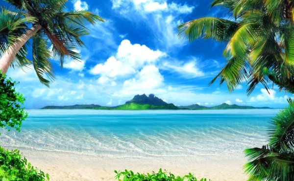 ![Пейзаж море пальмы]()