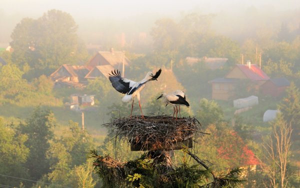 ![Пейзаж с аистами]()