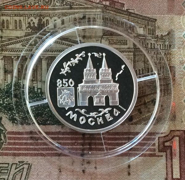 ![Монета 850 летие основания Москвы Юрием Долгоруким]()