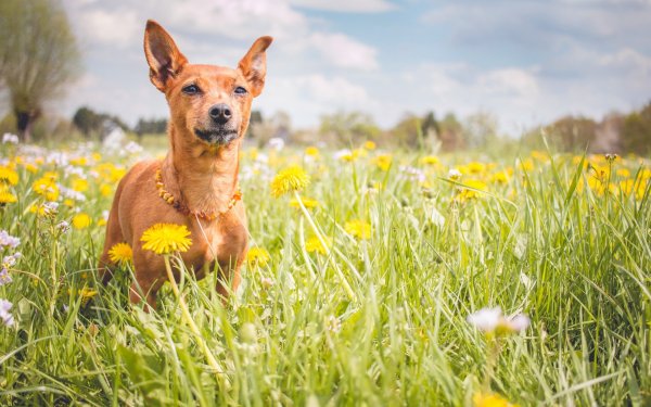 ![Собака в цветочном поле]()