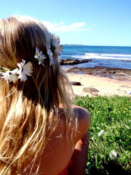 ![Блондинка с ромашками]()