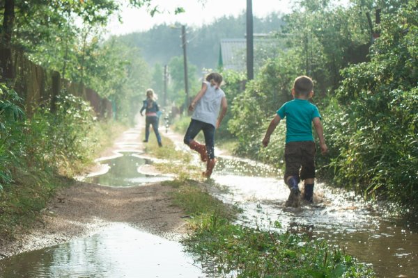 Дети бегают в деревне