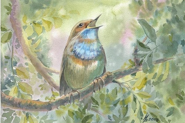 ![Соловей акварель]()