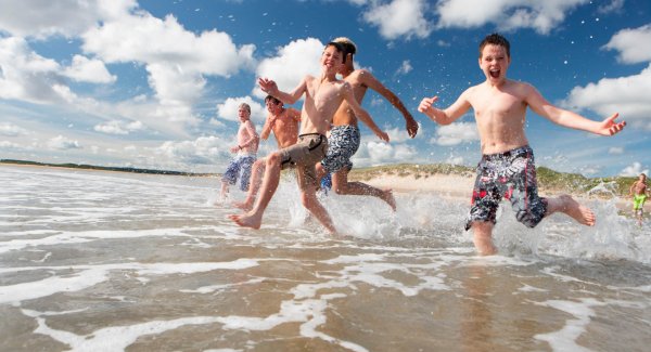 ![Дети купаются в море]()