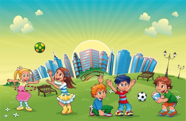 ![Мультяшные дети на детской площадке]()