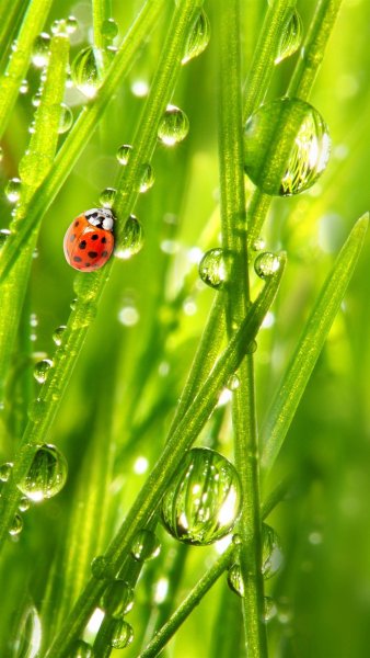![Божья коровка капля росы]()