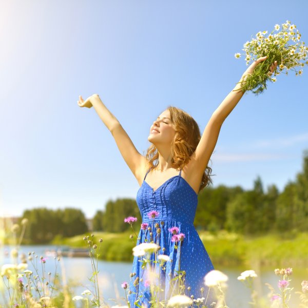 ![Счастливая женщина лето]()