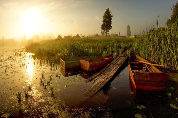 Река мостки рассвет деревня