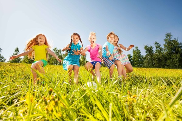 ![Дети бегут по лугу]()