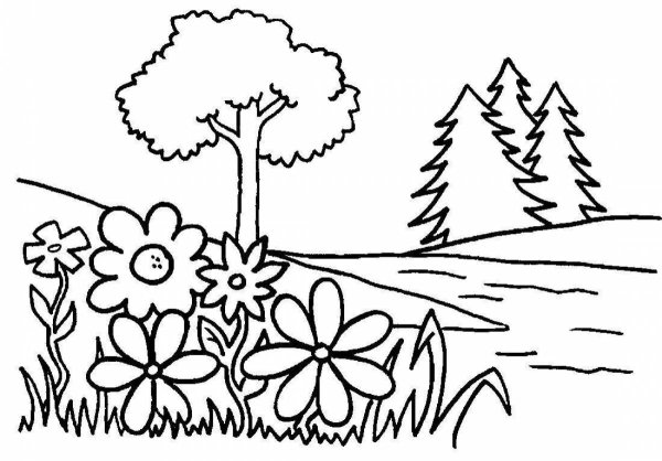 Раскраска пейзаж природы