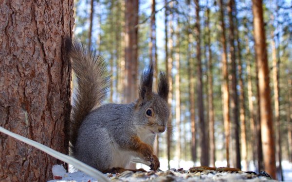 ![Белка зимой в лесу]()