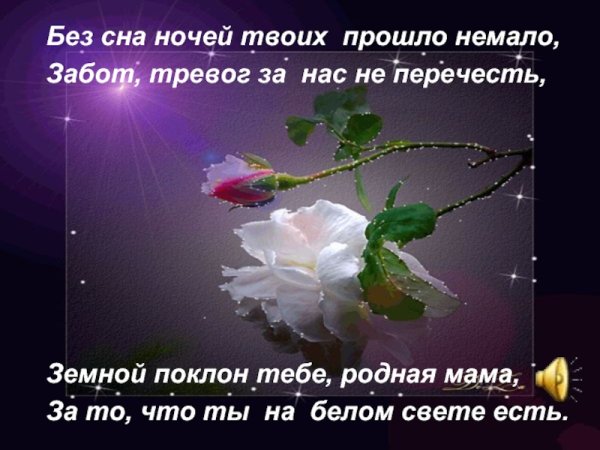 Без сна ночей твоих прошло немало забот тревог за нас не перечесть