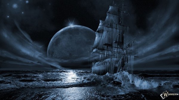 ![Летучий голландец корабль ночью]()