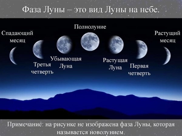 ![Фазы Луны новолуние растущая Луна полнолуние убывающая Луна]()