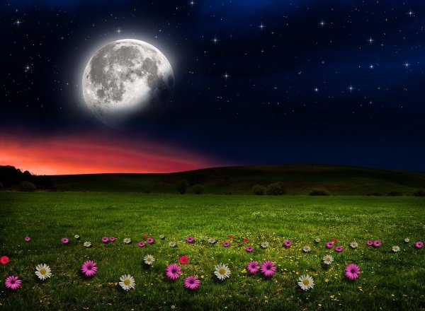 Ночное поле с луной