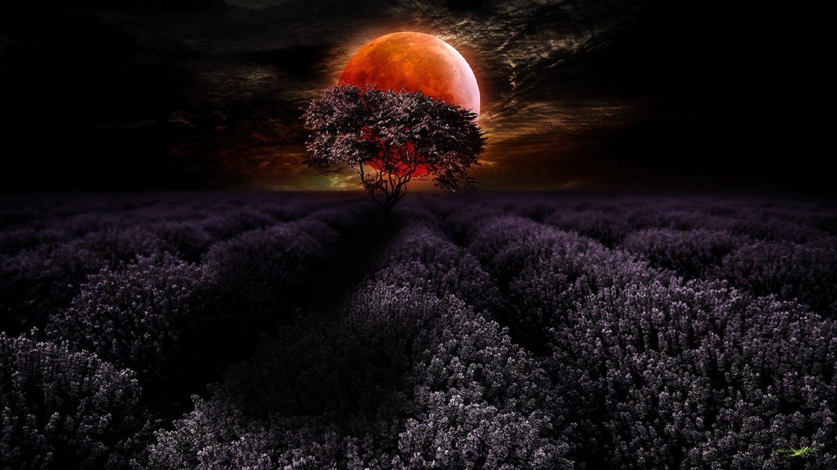 Ночное поле с луной