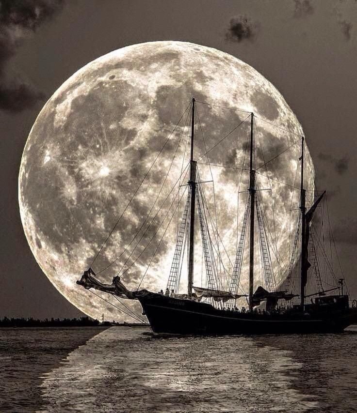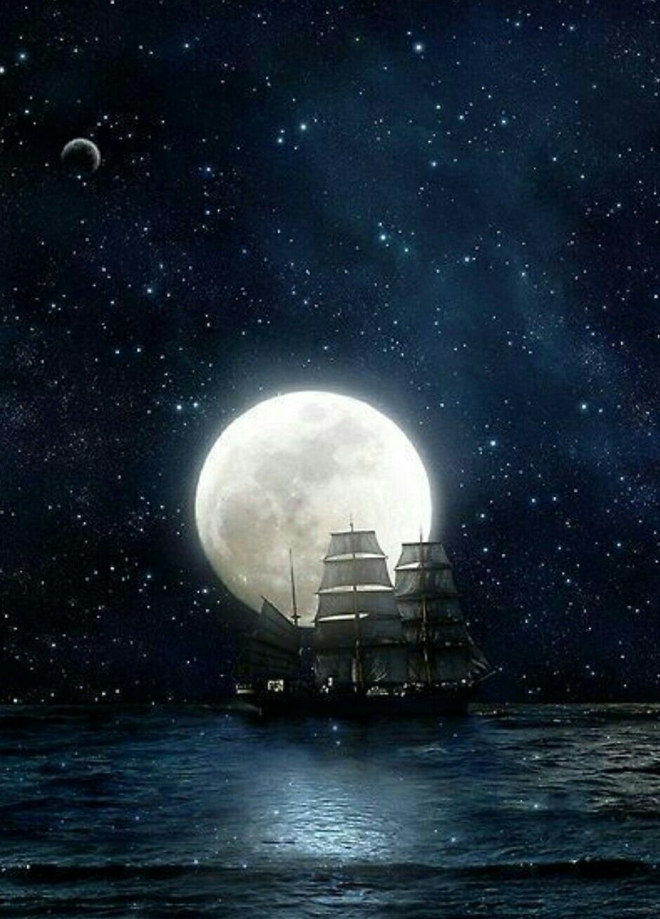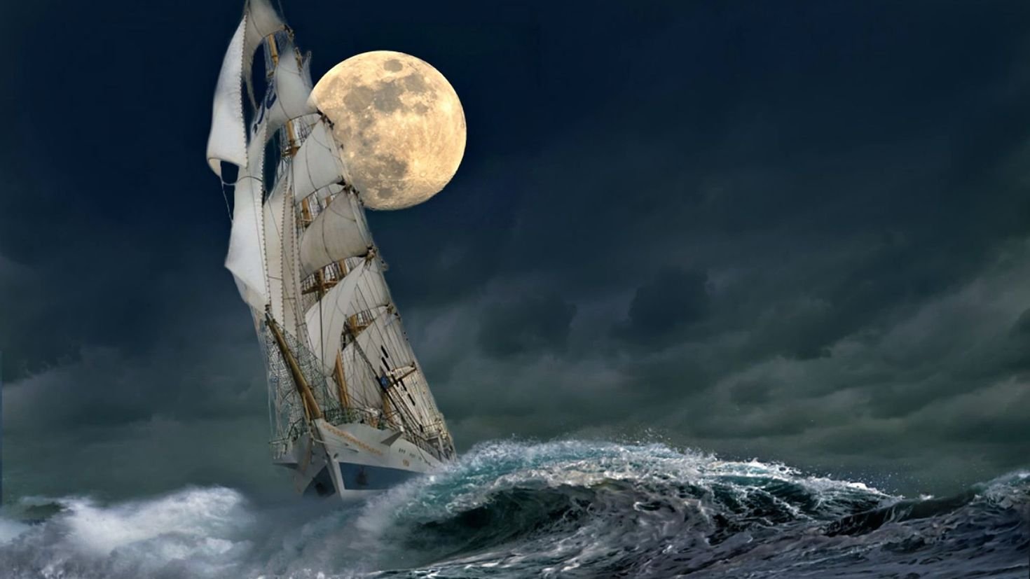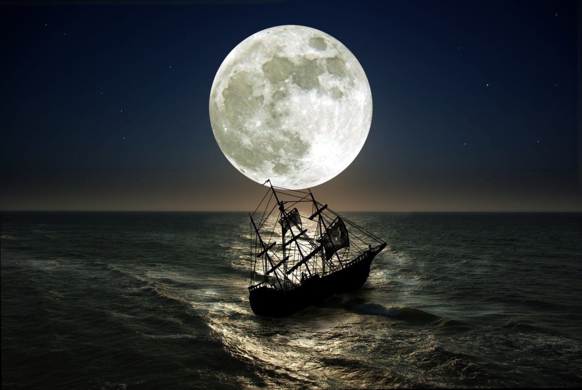 Ночь Луна корабль море