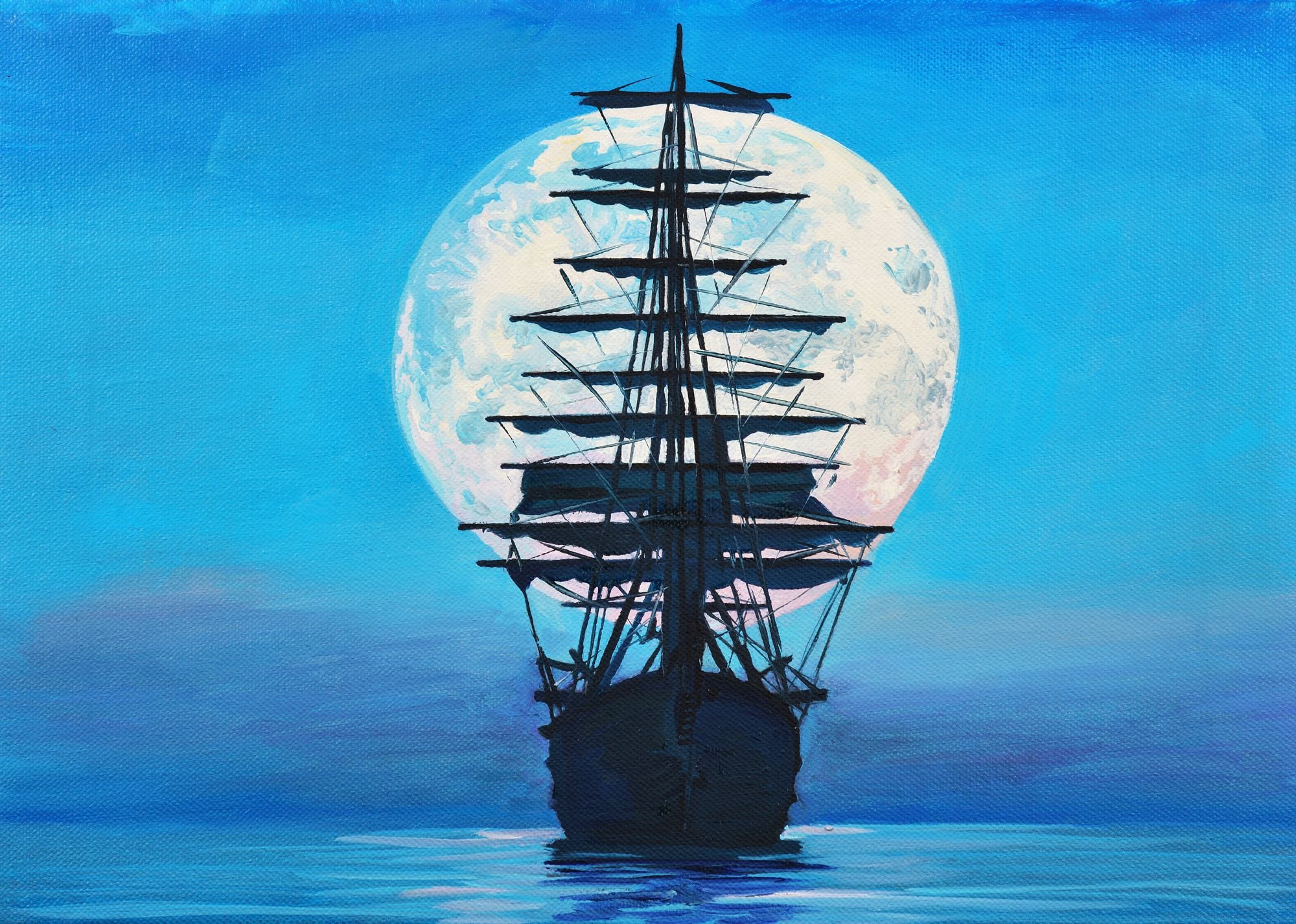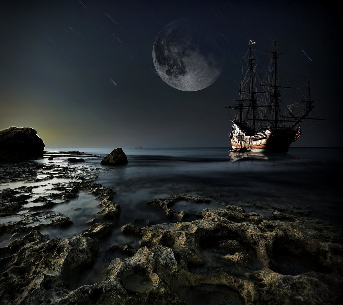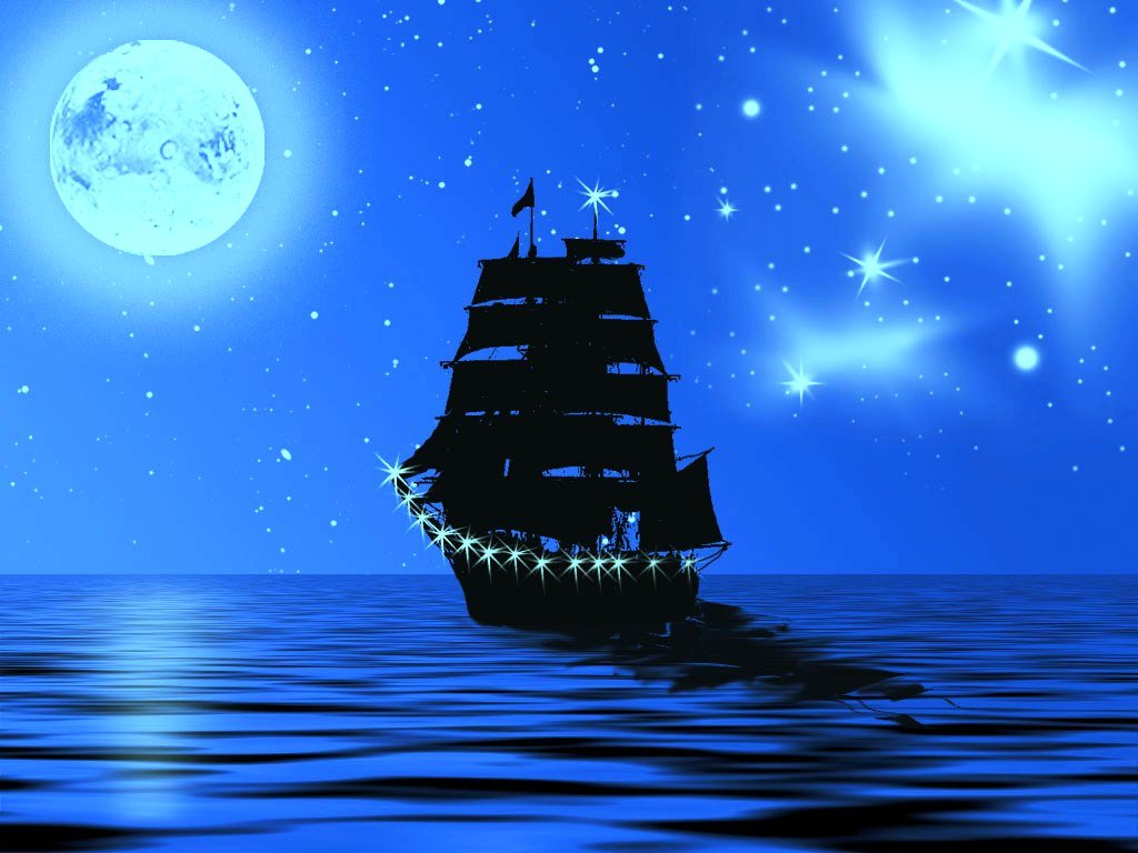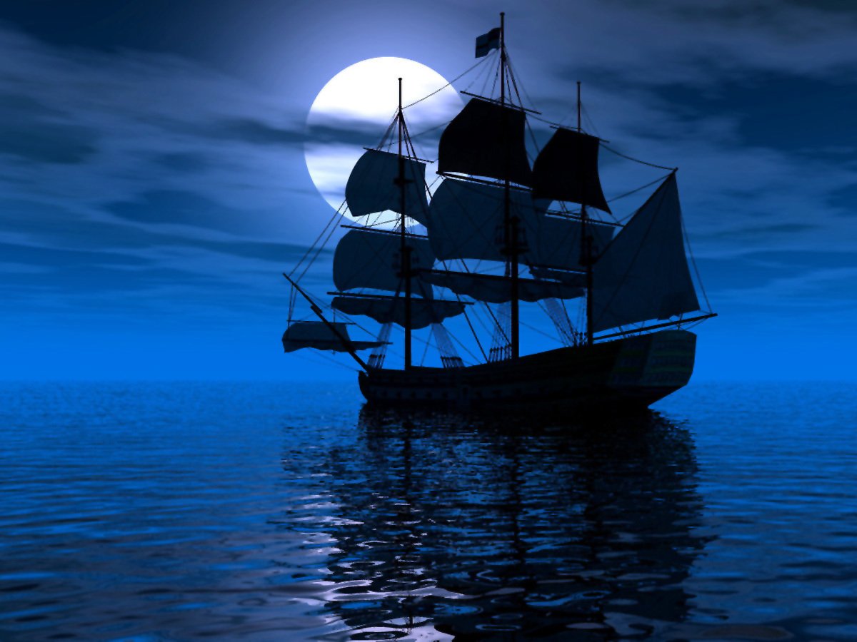 Ночь Луна корабль море