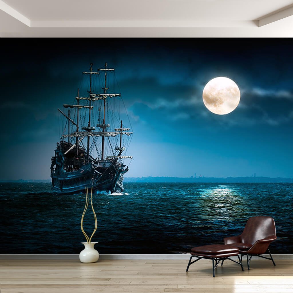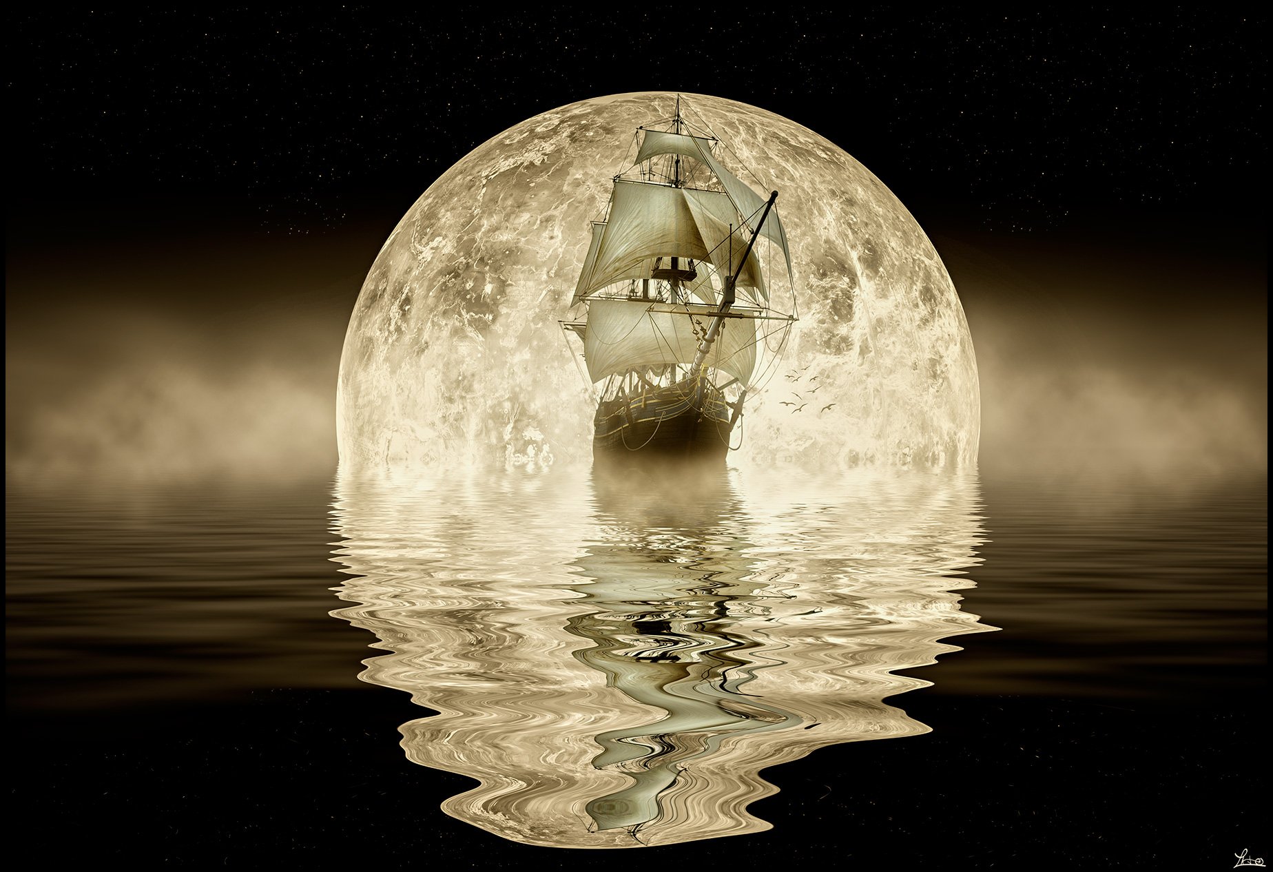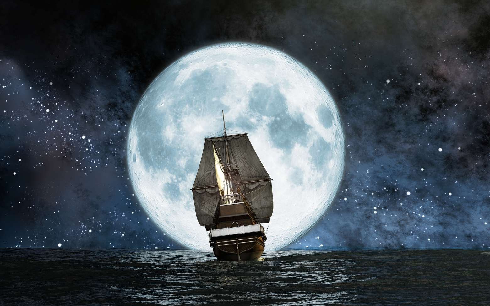 Парусный корабль на фоне Луны