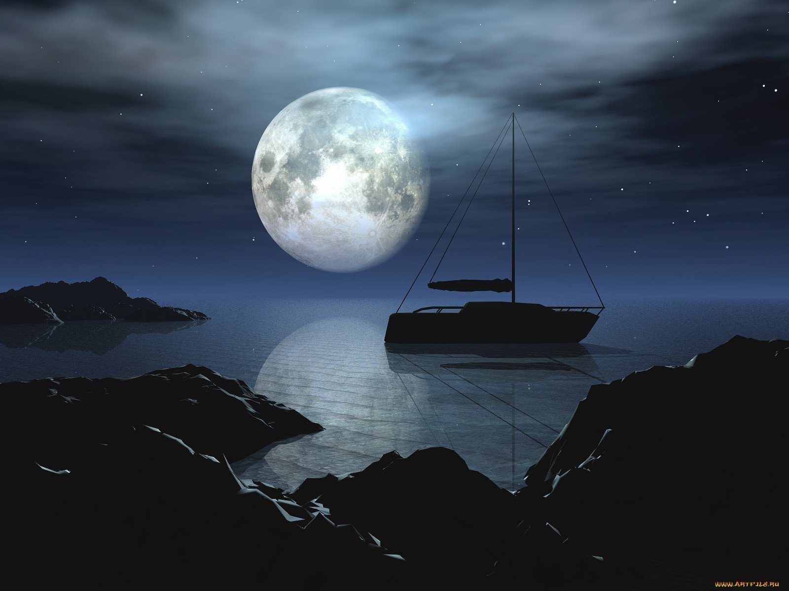 Корабль Парус под луной