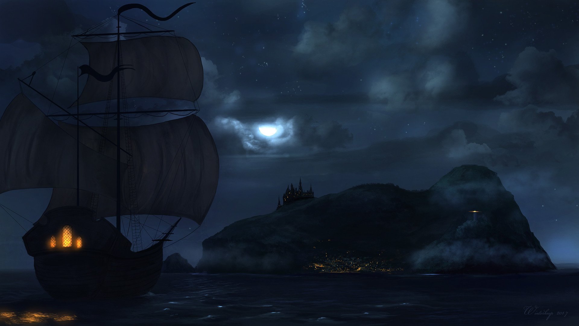 Фэнтези ночь море