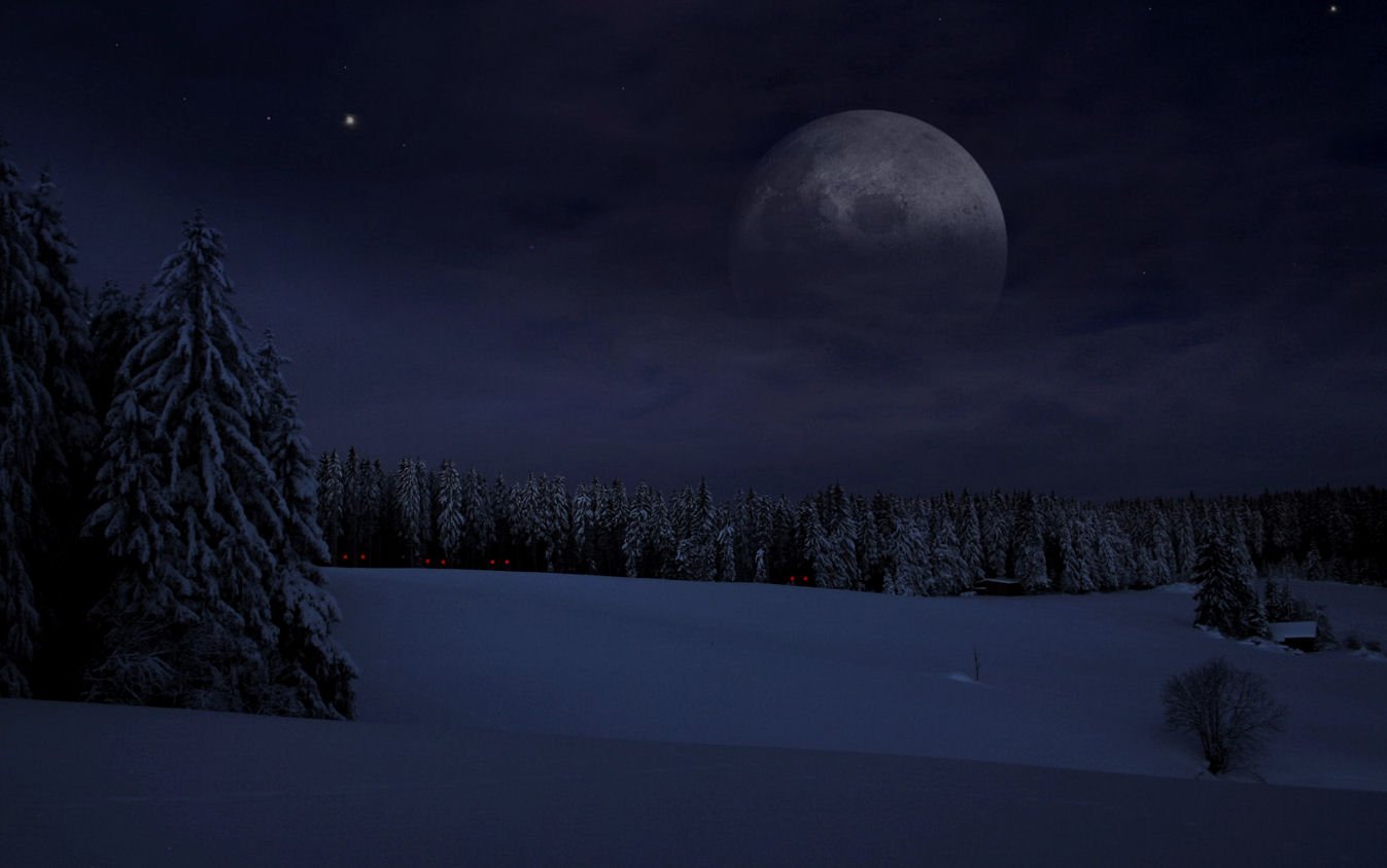 ![Ночь Луна снег]()