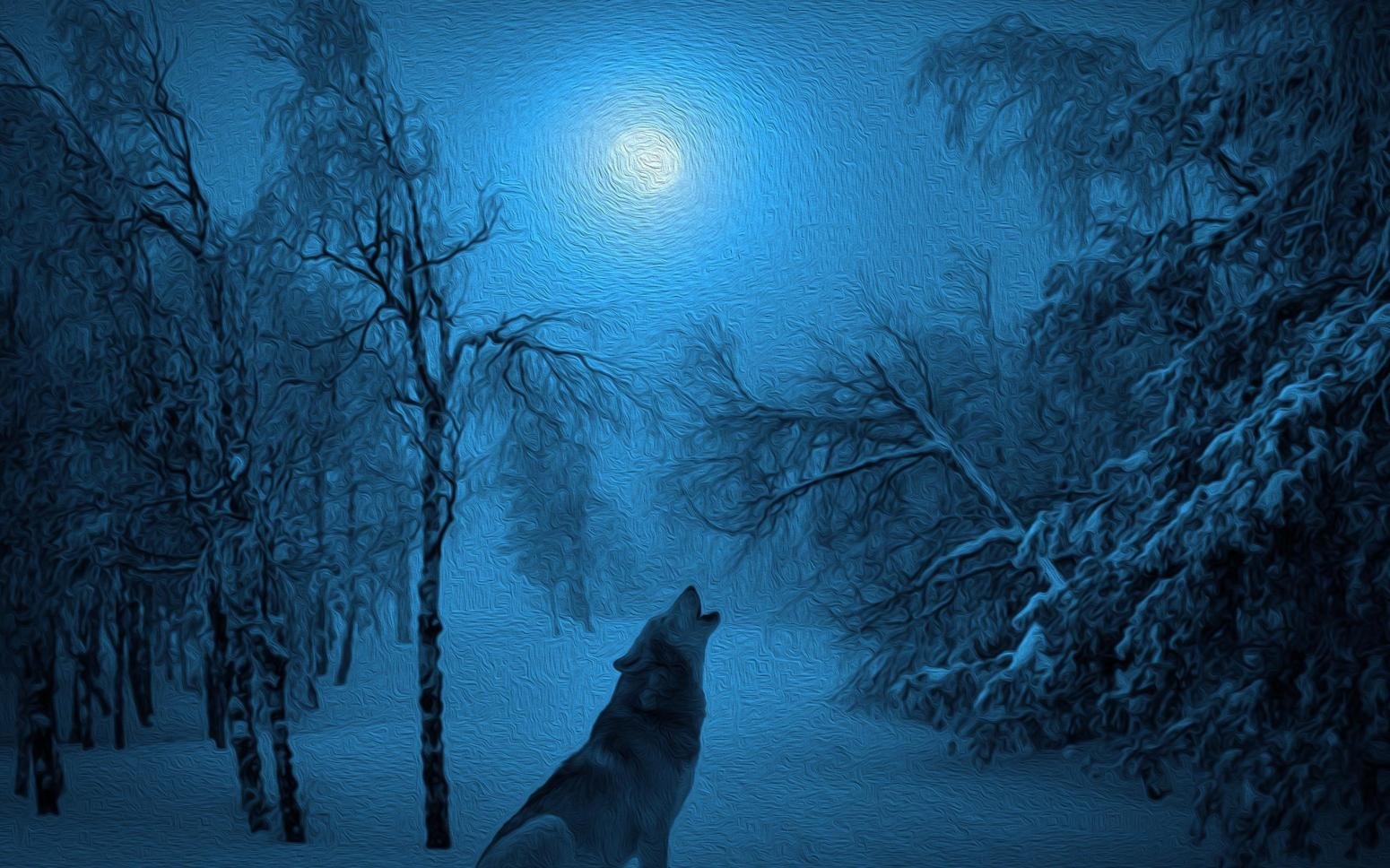 ![Полнолуние в зимнем лесу]()