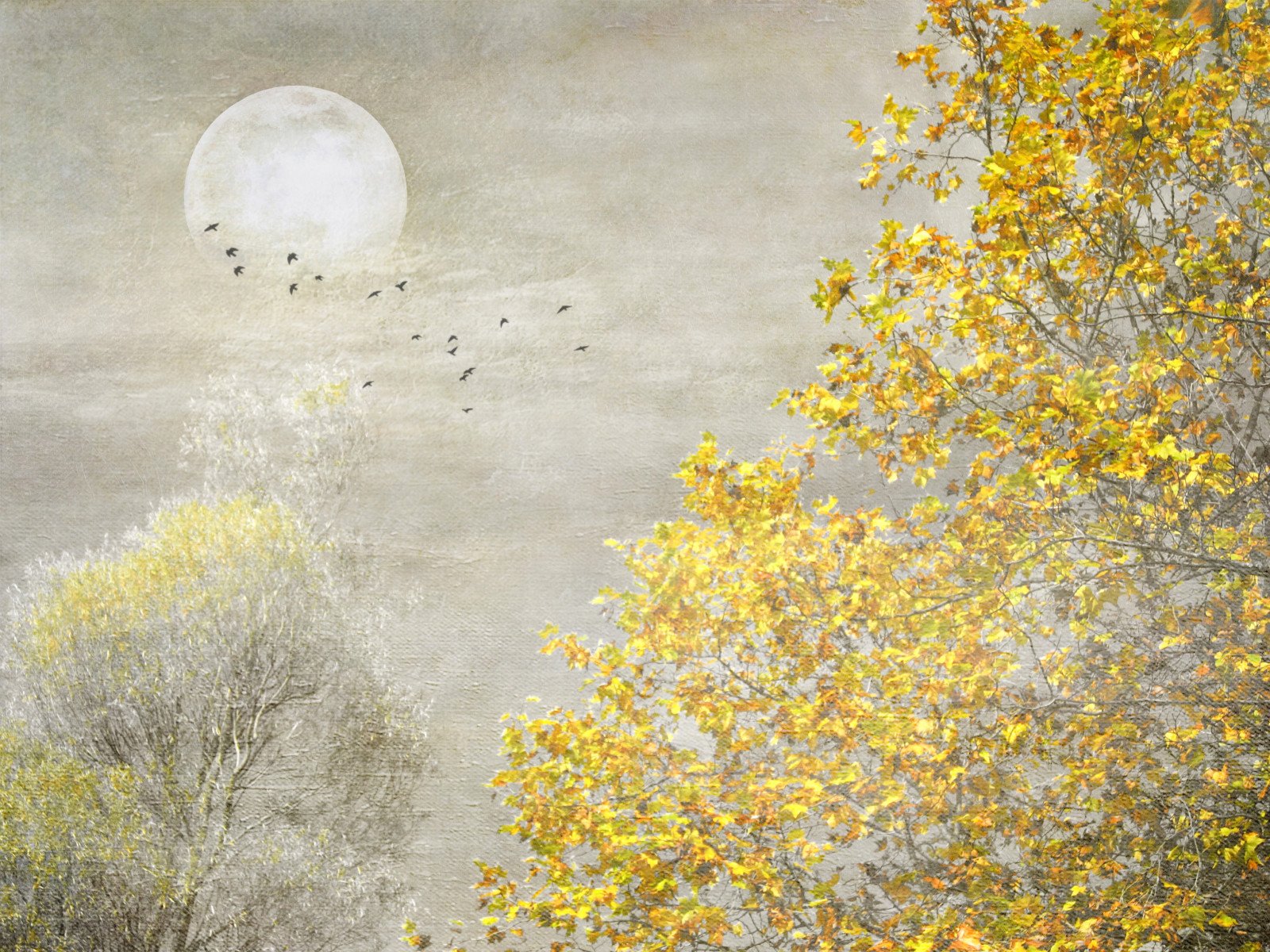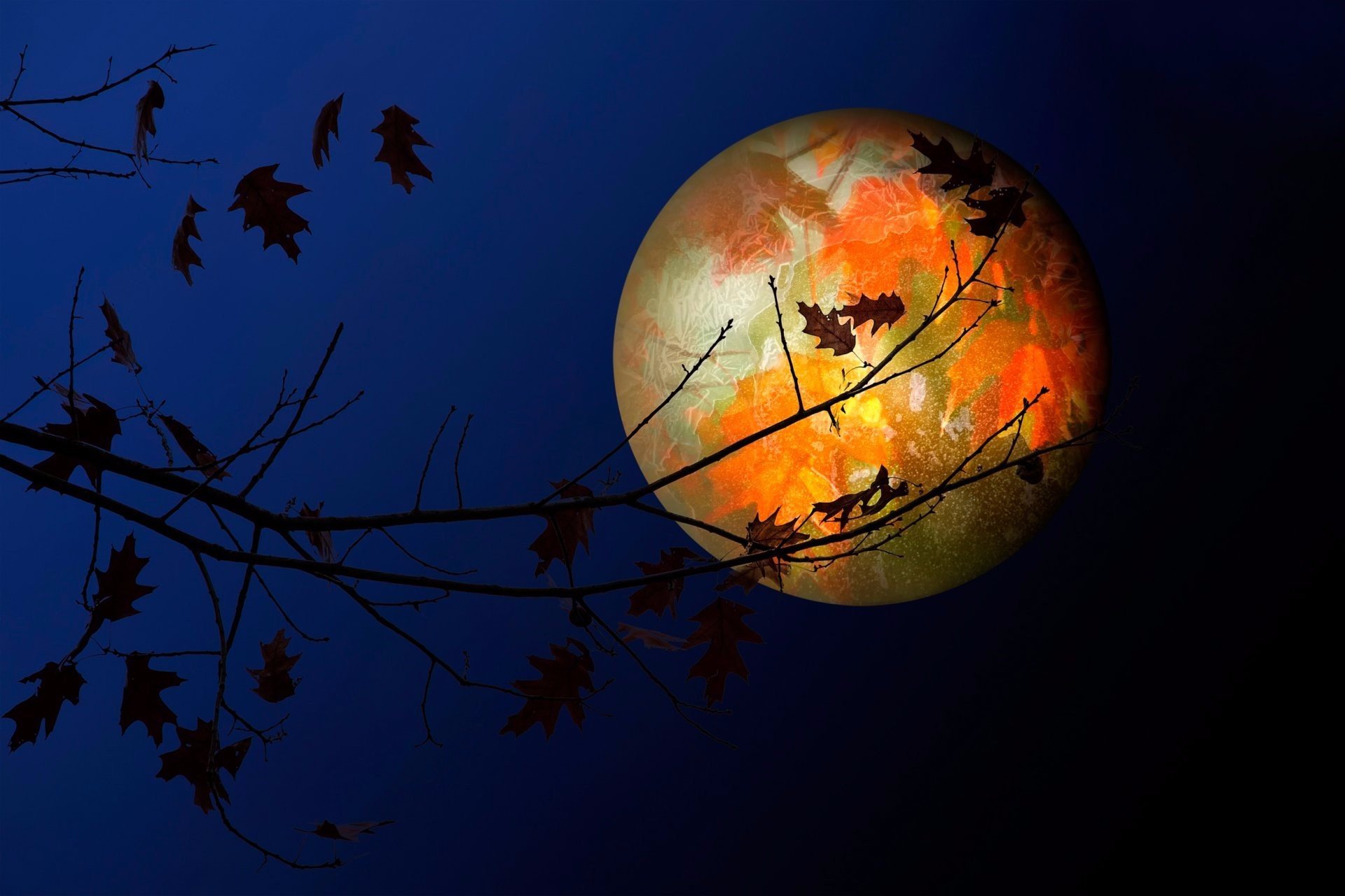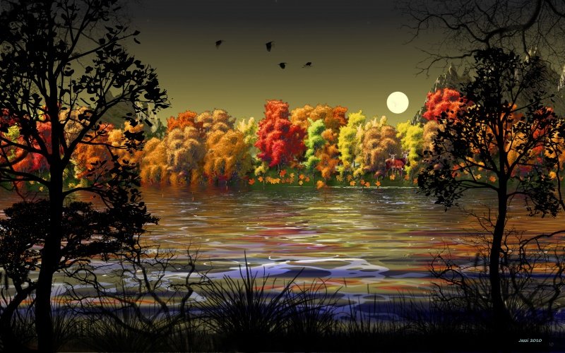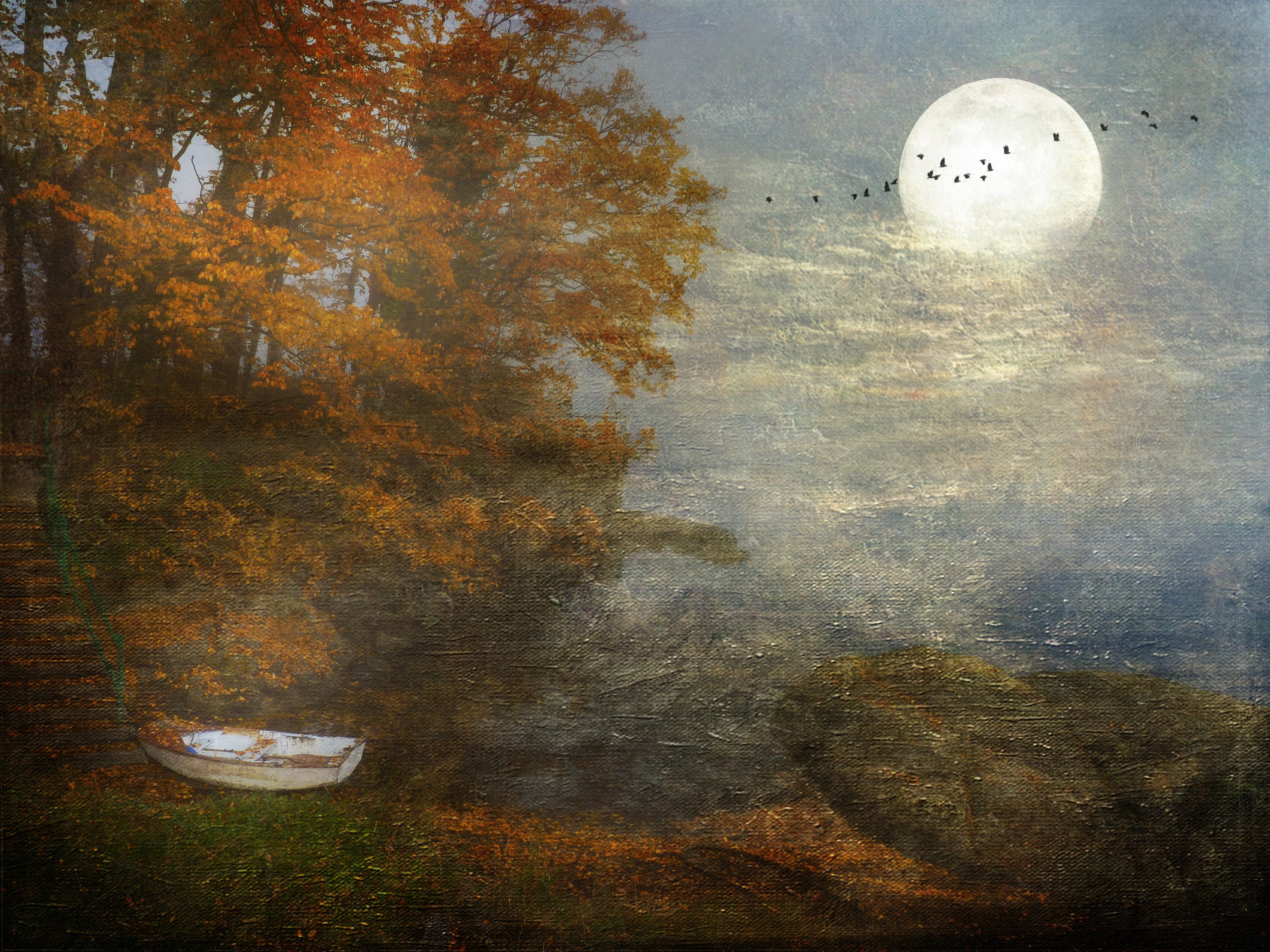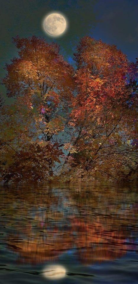 Осень Луна живопись