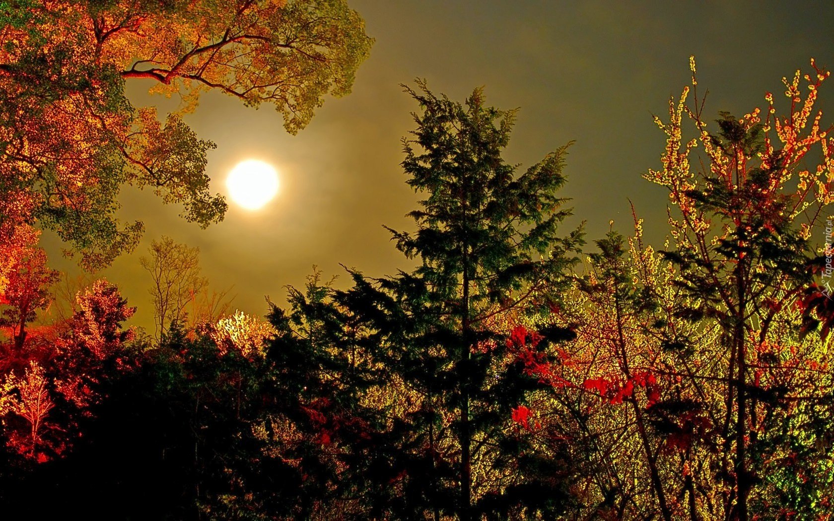 Осенние деревья ночью