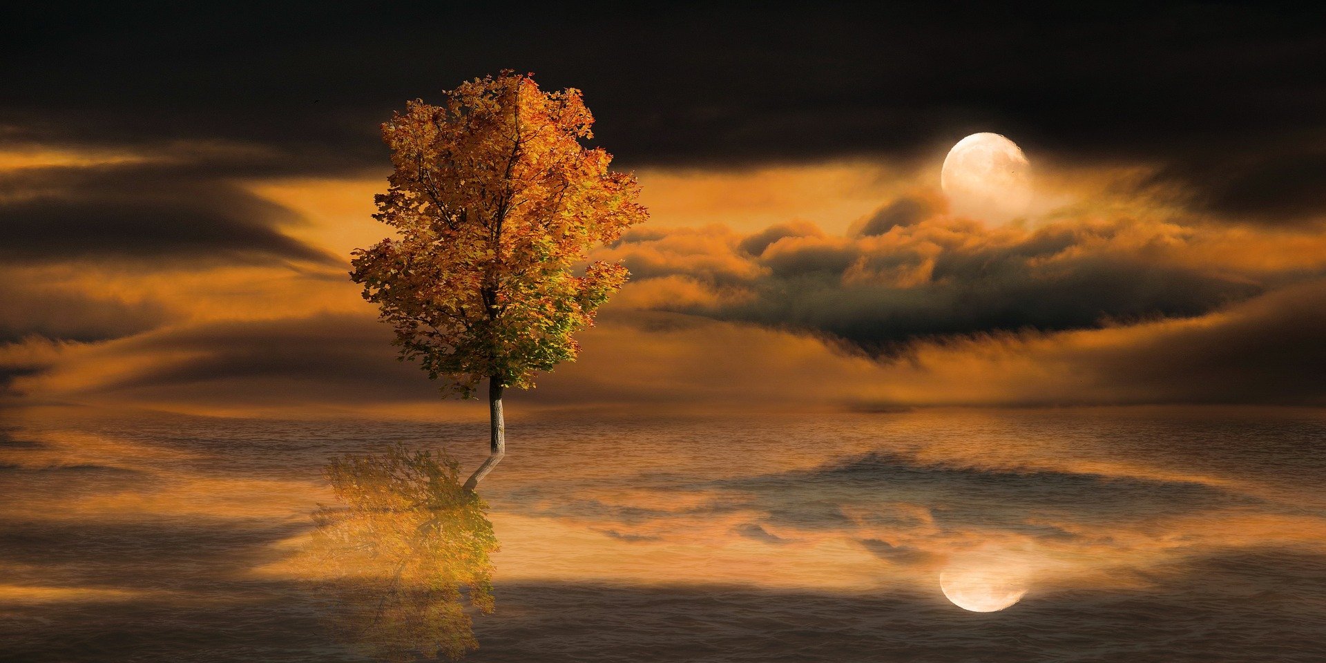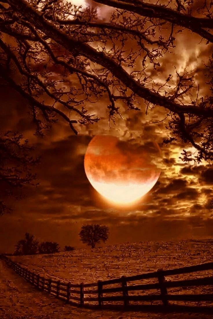 Красная Луна и дерево