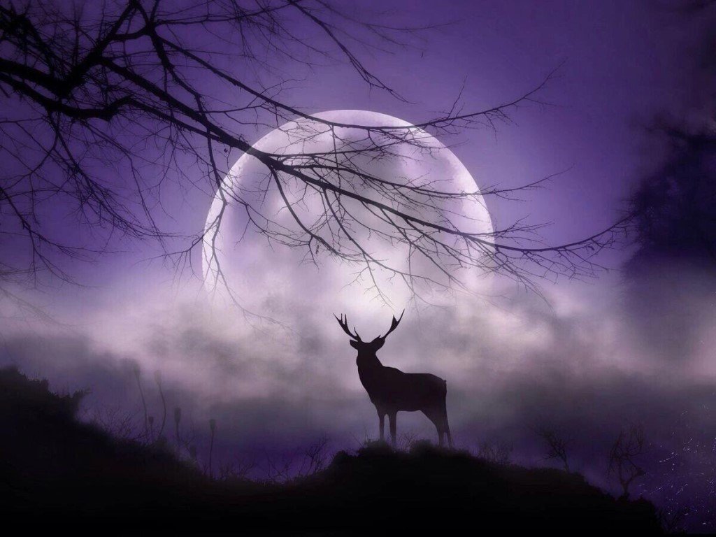 ![Олень ночью в лесу]()