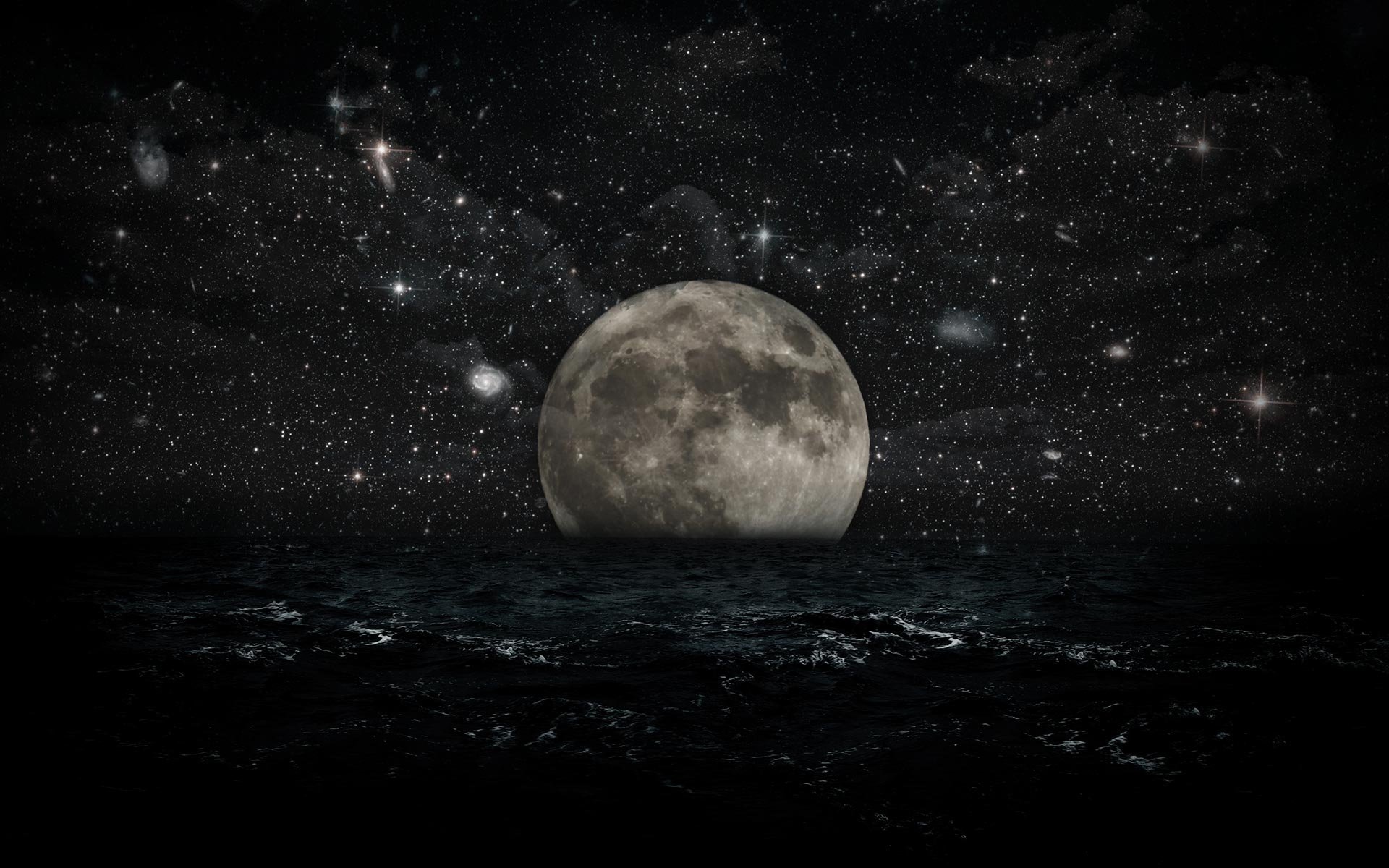 ![Ночь Луна море]()