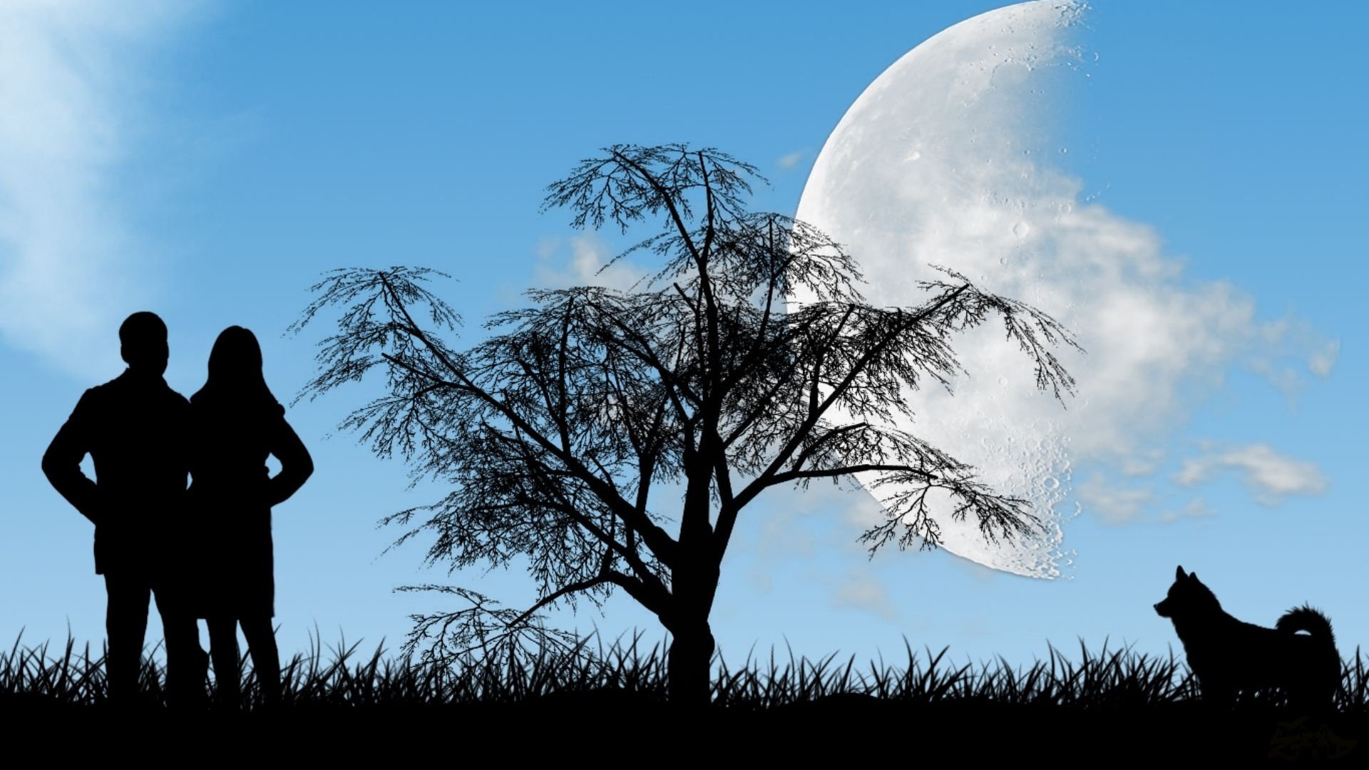 Влюбленная пара на фоне Луны