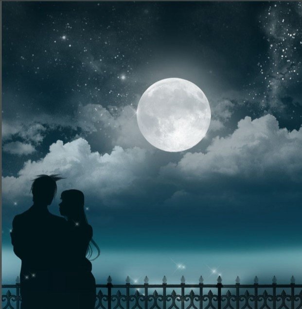 ![Влюбленные на фоне Луны]()