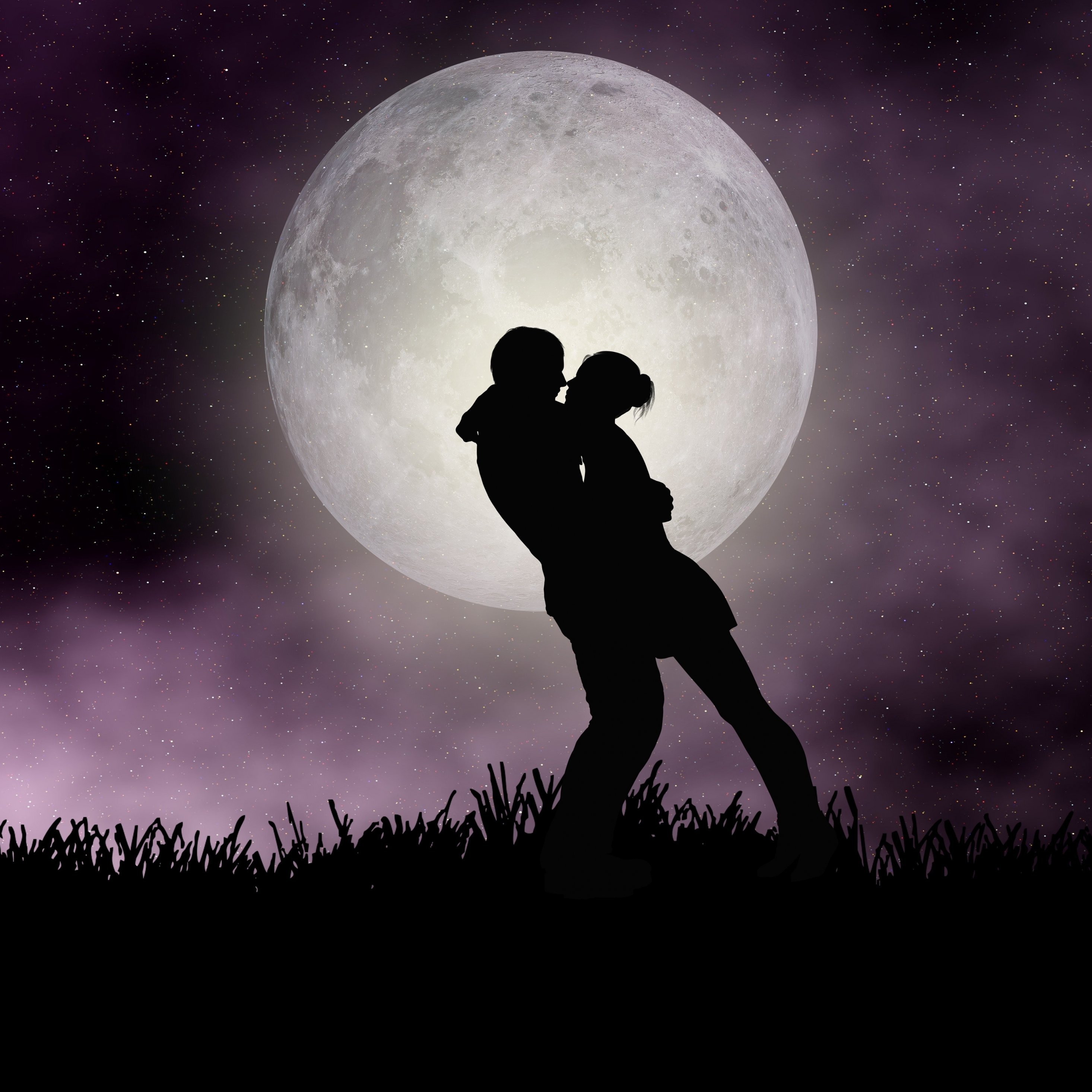![Поцелуй на фоне Луны]()
