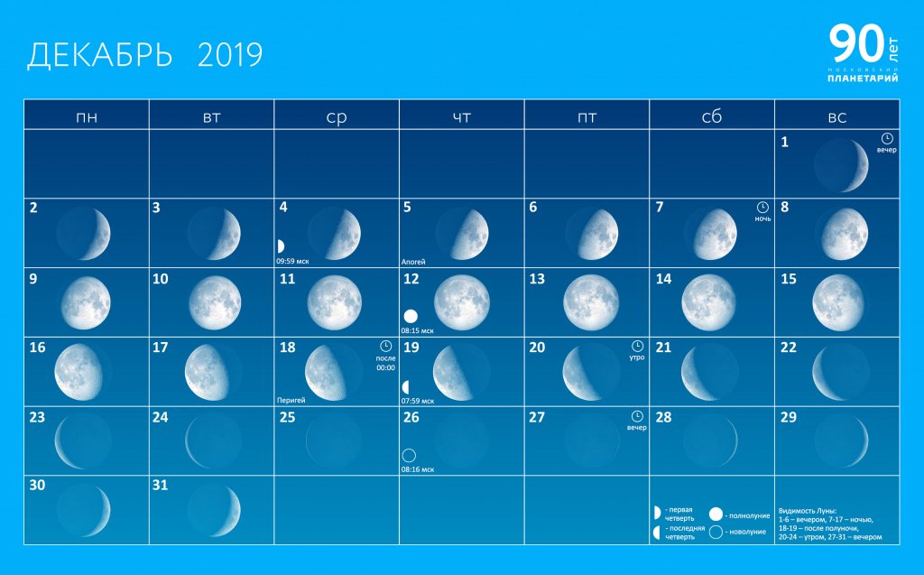Фазы Луны в декабре 2019