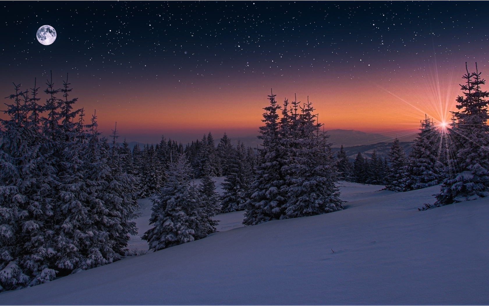 Зимние пейзажи с луной