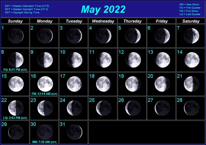 Moon phases Lunar Calendar 2022 год
