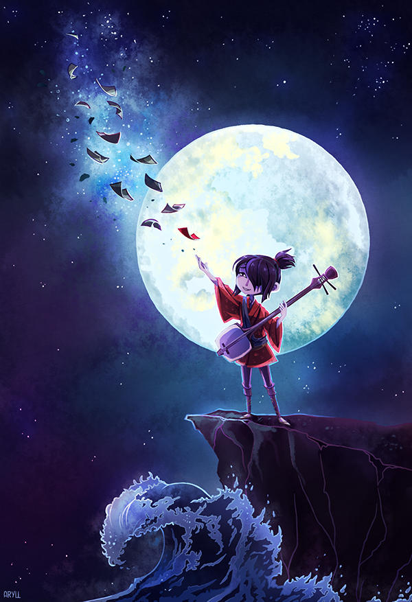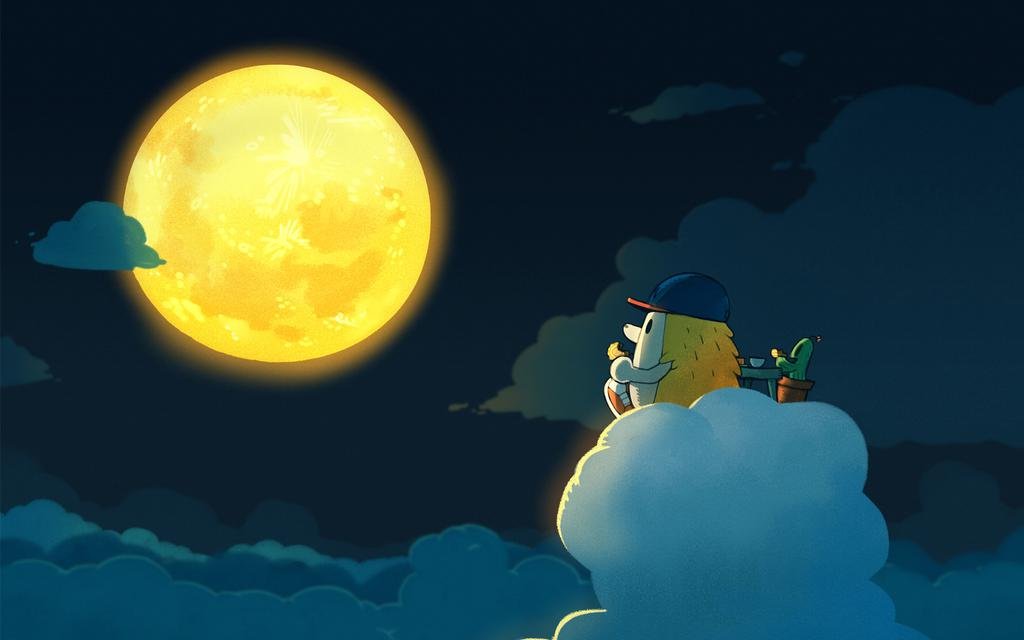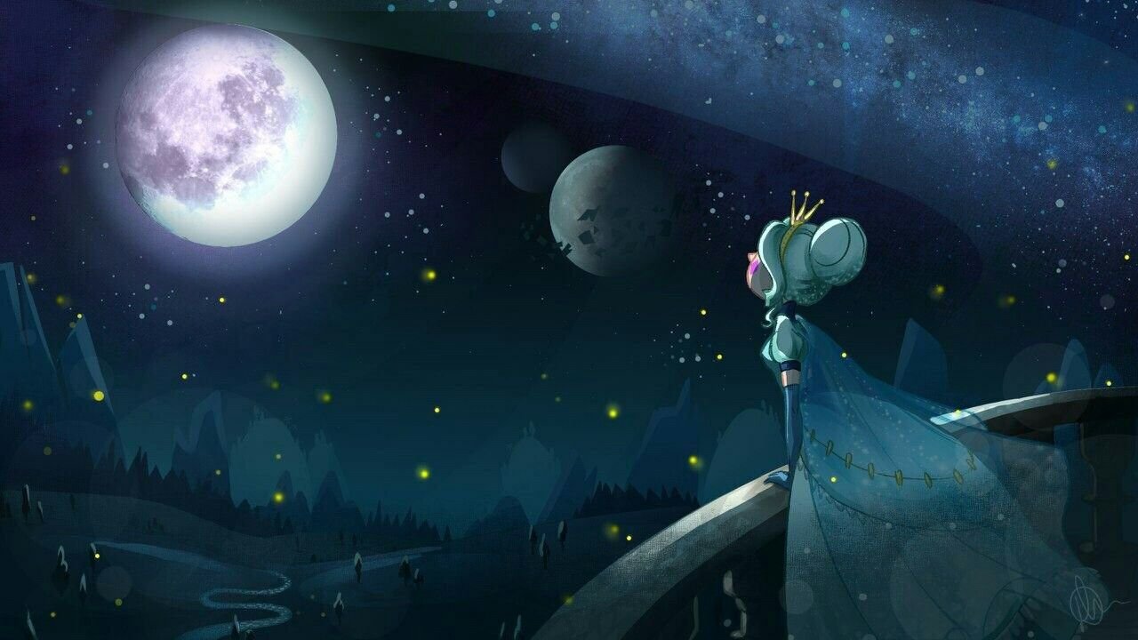 Девушка мультяшная и Луна