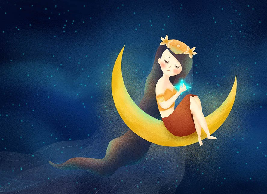 ![Девушка мультяшная и Луна]()