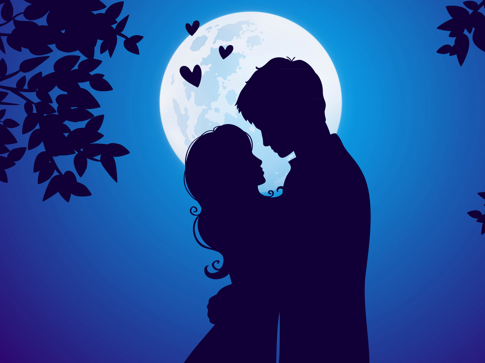 Влюбленная пара на фоне Луны