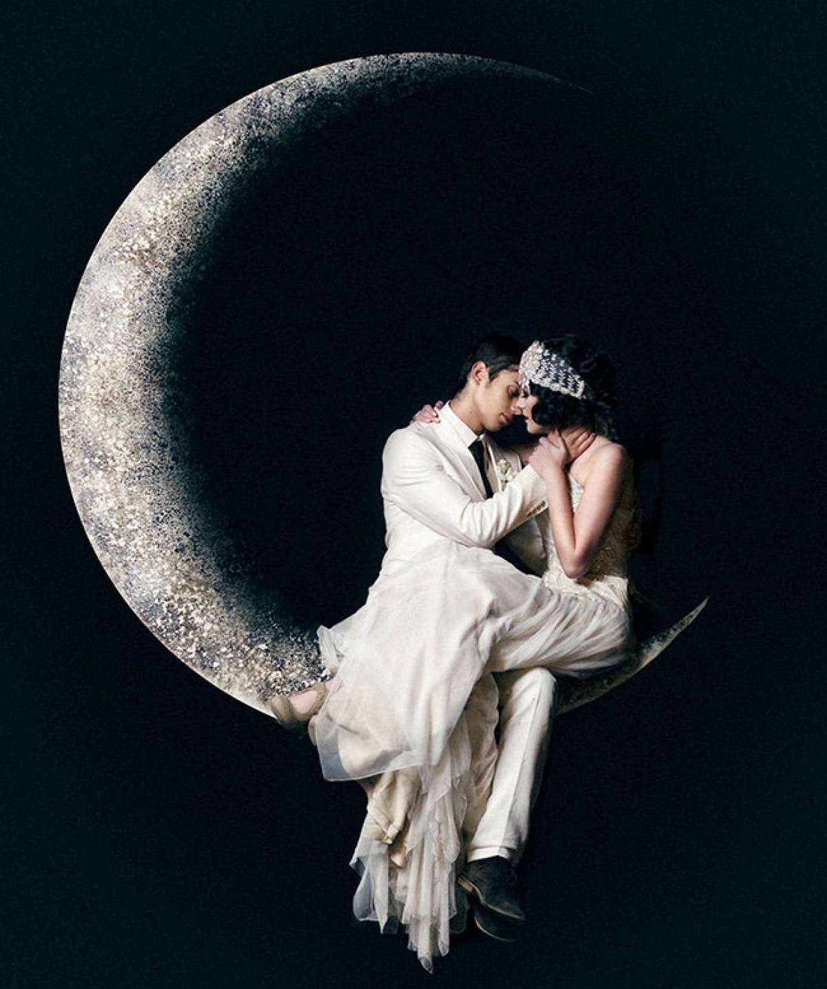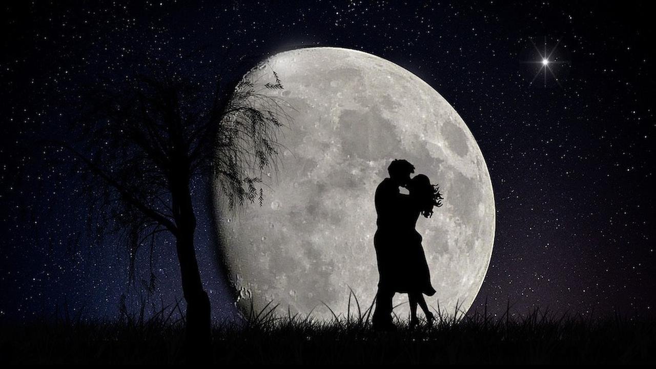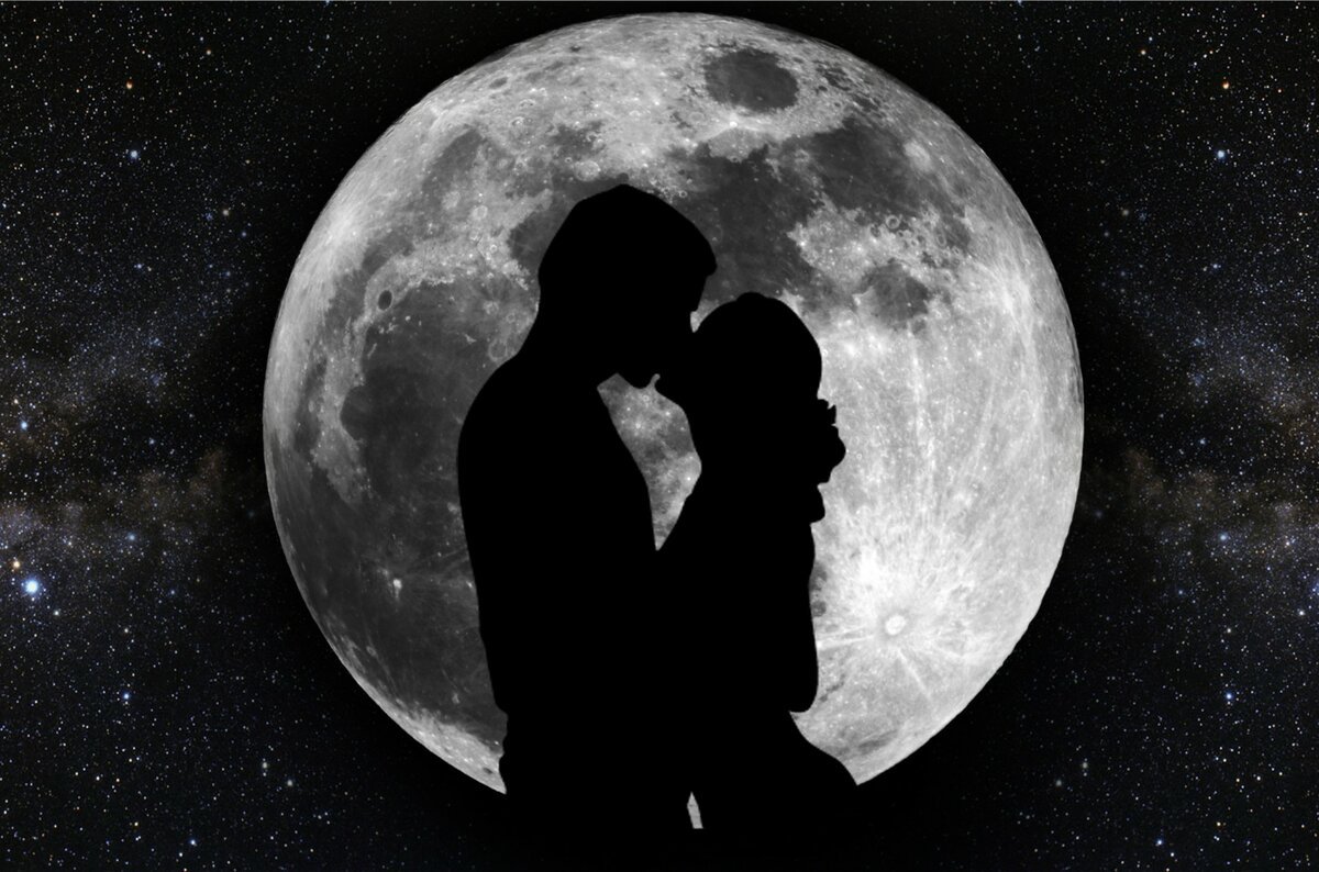 ![Влюбленные на фоне Луны]()