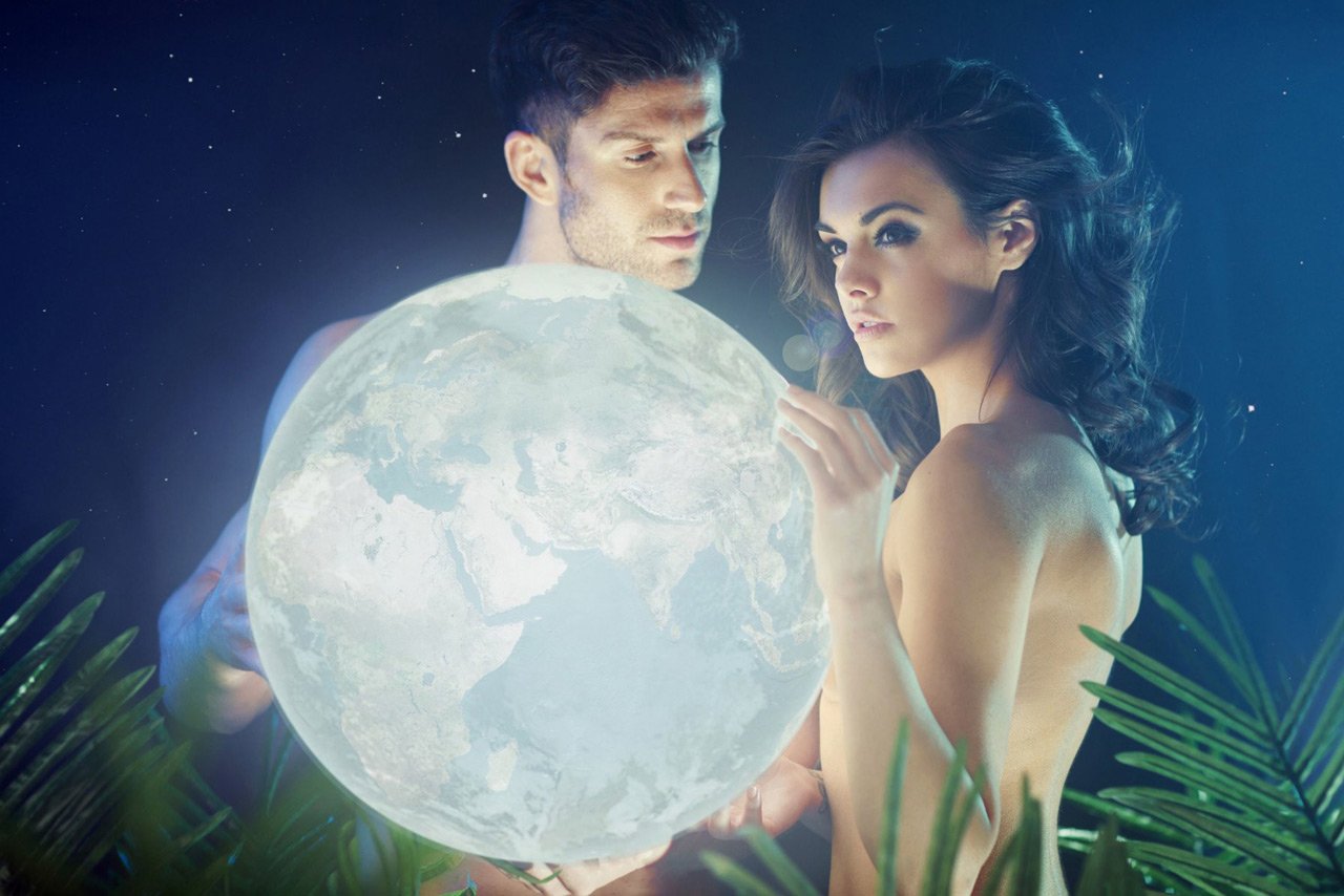 Мальчик и девочка на фоне Луны