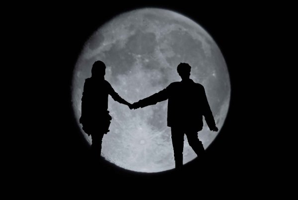 Два силуэта на фоне Луны