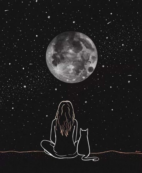 Девушка на Луне рисунок