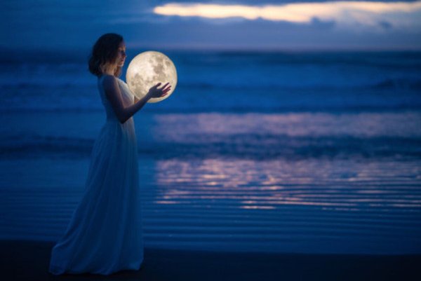 Девушка держит в руках луну
